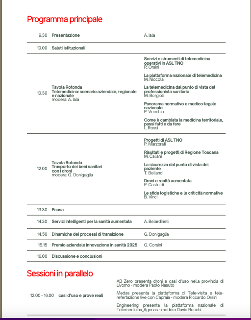 Il programma, disponibili on line sul sito dell’Azienda USL Toscana nord ovest prevede interventi e tavole rotonde con esperti regionali e nazionali, dimostrazione pratiche e casi d’uso e la premiazione del progetto più innovativo presentato dagli operatori sanitari.