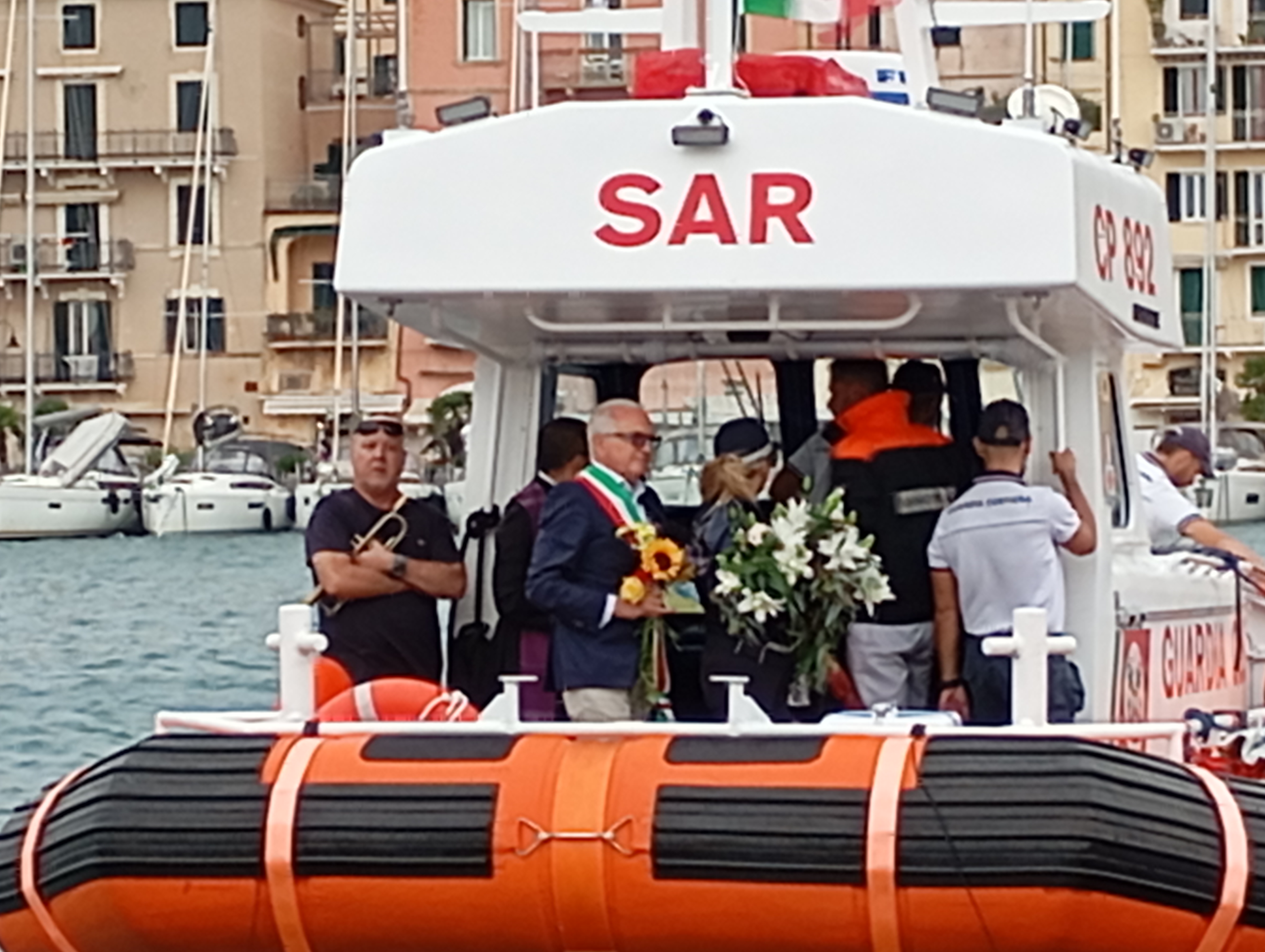 Dopo il discorso del Sindaco, la cerimonia si è trasferita nel piazzale della Capitaneria di Porto, dove attendevano alcuni bambini della scuola materna “Tonietti”, che hanno portato dei fiori al sindaco per aggiungerli alla tradizionale corona commemorativa dei caduti. Dopo essere salite sulla motovedetta SAR CP 892, le autorità hanno raggiunto il centro della Darsena Medicea per deporli in mare in onore delle oltre 300 vittime della tragedia del 22 settembre 1943.