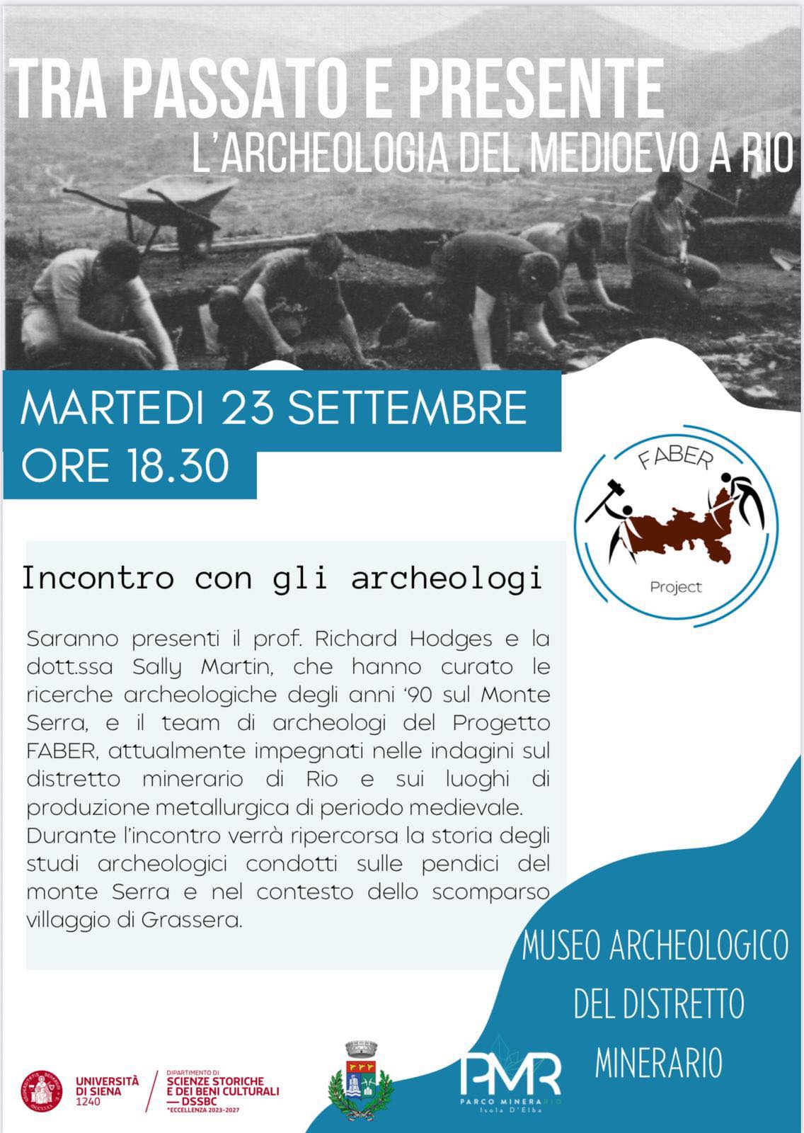 Il professor Richard Hodges e la dottoressa Sally Martin, protagonisti delle ricerche archeologiche degli anni ‘90, rileggeranno i diversi aspetti toccati dalle indagini condotte sul territorio riese. L’evento si inserisce nel quadro delle iniziative pubbliche promosse dal progetto archeologico Faber, coordinato dalle professoresse Giovanna Bianchi e Luisa Dallai del Dipartimento di Scienze Storiche e dei Beni Culturali dell’Università di Siena, e realizzato su concessione della Soprintendenza Archeologia, Belle Arti e Paesaggio per le province di Pisa e Livorno, in collaborazione con il Comune di Rio . L’incontro approfondirà il tema della produzione siderurgica del distretto di Rio nel Medioevo e illustrerà la nuova agenda della ricerca attualmente in corso.