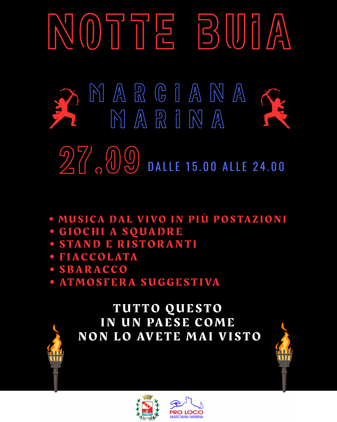 Il 27 Settembre a Marciana Marina si terrà la Notte Buia. Una giornata all’insegna di giochi, musica, cibo e divertimento. L’evento inizierà alle 15 con una serie di giochi presi dal repertorio delle feste di paese degli anni passati: gara di nuoto con le ciambelle, gara di corsa con i sacchi, tiro alla fune, calcetto e racchettoni in spiaggia. Assisteremo anche ad un grande ritorno: il gioco del Palo Insevato (palo insebato alla marinese), che ormai da anni mancava dalle scene paesane.