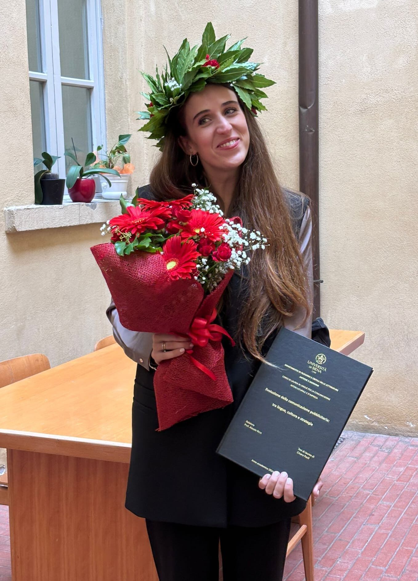 Il 25 settembre, ad Arezzo, Chiara Paoli ha conseguito la laurea in Lingue per la Comunicazione Interculturale e d’Impresa, concludendo con successo un percorso di studio impegnativo e ricco di soddisfazioni. A condividere questo importante traguardo, il fidanzato Niccolò, i genitori Giulio e Roberta, la sorella Francesca e la nonna Lola, orgogliosi del risultato raggiunto e dell’impegno costante dimostrato da Chiara.