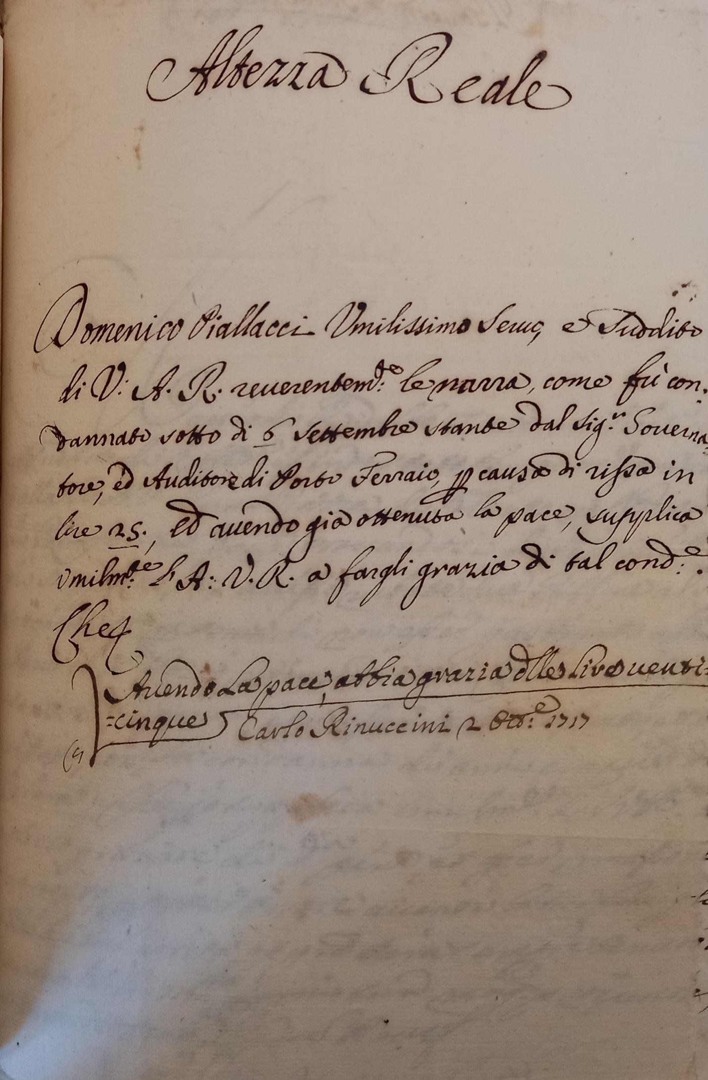 (1717.Supplica di grazia di Domenico Piallacci al granduca di Toscana .