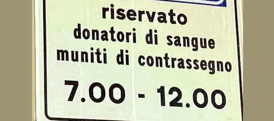 Ai donatori verrà consegnato un contrassegno personale, che permetterà di effettuare la sosta negli stalli dedicati, senza incorrere in possibili contravvenzioni. E’ vero che due posti in una fascia oraria così limitata, non soddisfa le reali necessità, comunque la Direzione Sanitaria ha preso impegno che al termine dei lavori in corso nel compendio ospedaliero, provvederà a individuare ulteriori stalli da riservare ai donatori.