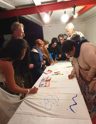 Realizzata interamente con lenzuola bianche riciclate – molte provenienti dai corredi delle nonne, definite simbolo di memoria e continuità – la bandiera è diventata “una voce corale planetaria”.