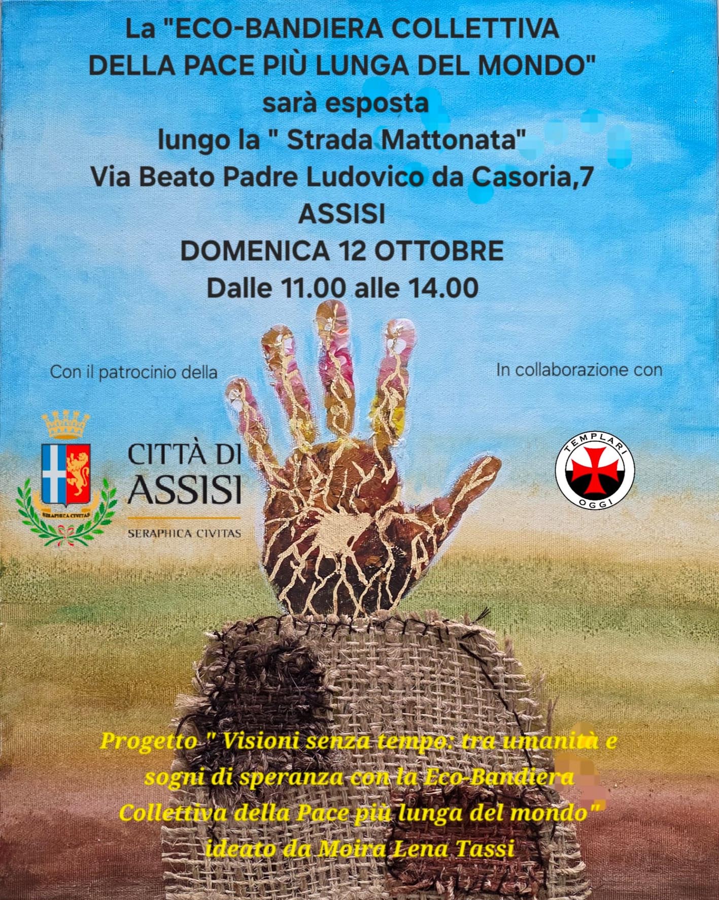 “Aderisco con gioia all’esposizione della “eco – bandiera collettiva della pace più lunga del mondo. Un’ iniziativa pregevole, evocativa dei temi più cari alla città del Santo più amato: la pace, la fratellanza, la concordia tra i popoli. Un modo originale per attrarre l’attenzione, attraverso l’arte e la spontaneità della pittura e del disegno, sui conflitti che affliggono l’umanità. L’eco-bandiera di Moira Lena Tassi rappresenta un grido di pace che da Assisi spero giunga in ogni angolo del mondo.”
