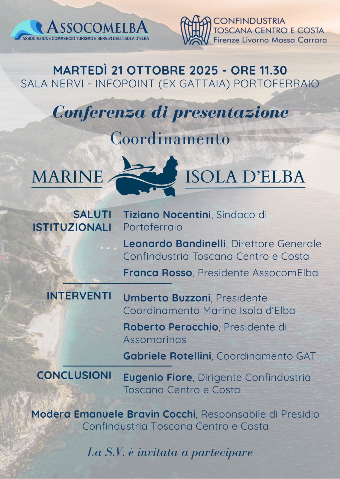 Si è costituito il Coordinamento delle Marine dell’Isola d’Elba, un progetto al quale abbiamo lavorato nella consapevolezza di quanto sia importante il turismo nautico da diporto per la nostra Isola. La valorizzazione dell’offerta ed una maggiore sinergia del comparto favorirà sicuramente la già prestigiosa immagine dell’Elba quale destinazione ambìta nel settore. Il convegno si svolgerà martedì 21 ottobre alle ore 11.30 presso la Sala Nervi a Portoferraio.