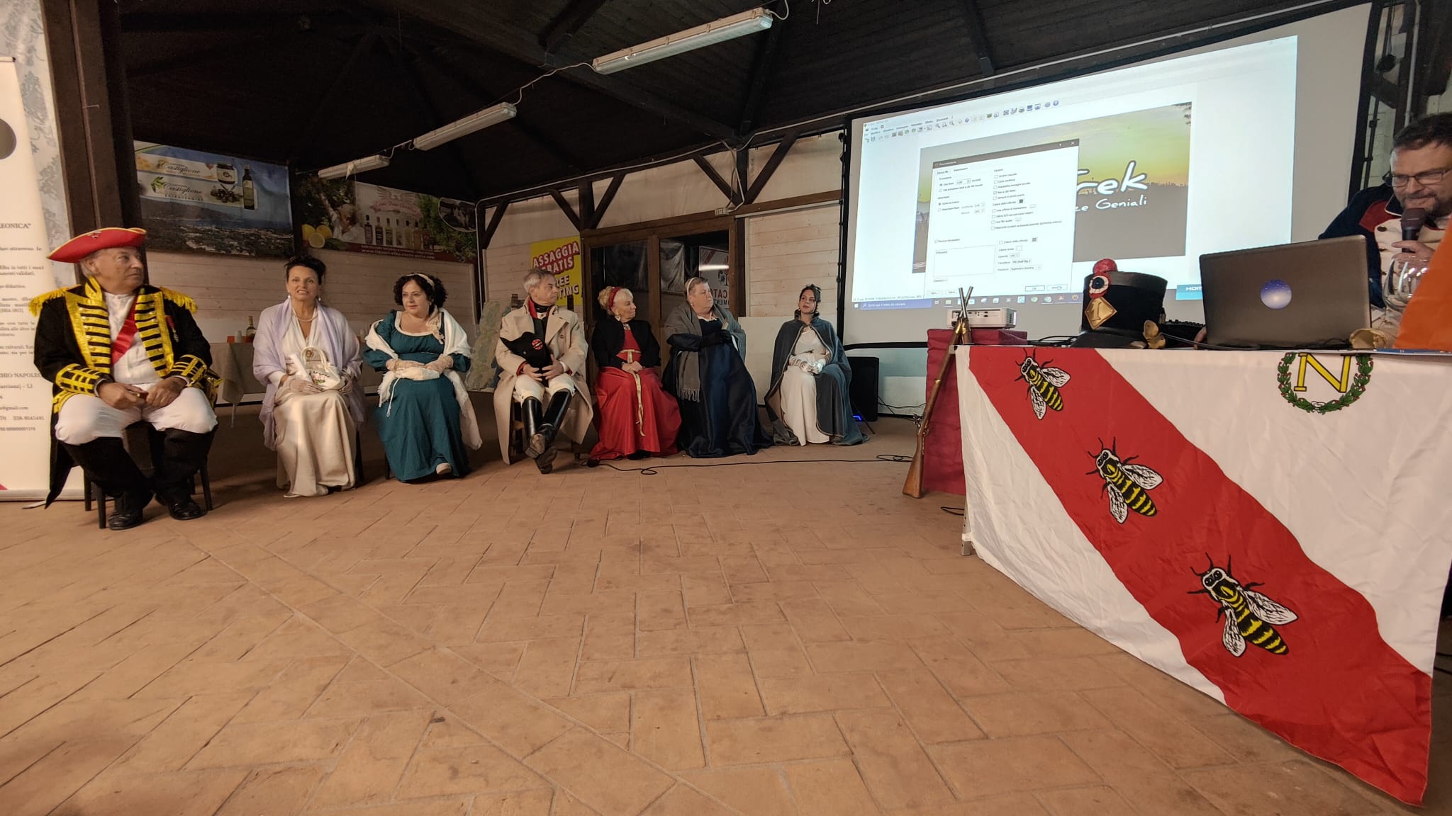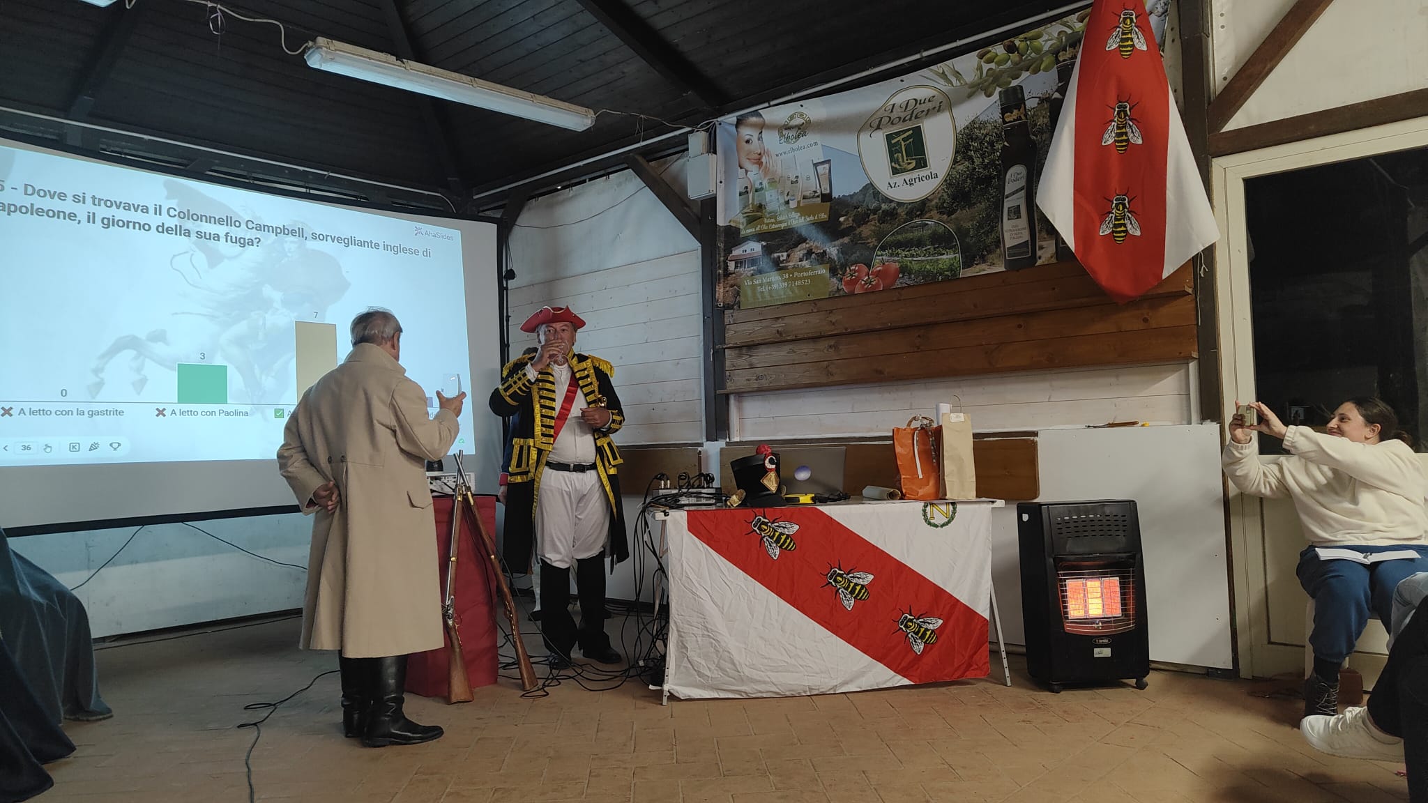 Si è svolta sabato sera (dalle 21.45) all’interno dello spazio tenda presente nel parco attrezzato di Procchio la serata richiesta da un tour operator di Pistoia (Joey Trek Experience) all’Associazione Culturale Procchio Napoleonica che ha visto la realizzazione del fortunato format “Quiz Napoleonico” ovviamente rivolto ai soli clienti della gita (circa 20). L’iniziativa, che ha avuto base proprio a Procchio (in uno hotel e case vacanze), ha visto i partecipanti immergersi per una tre giorni in tutti i luoghi canonici napoleonici dell’isola d’Elba (teatro Vigilanti, Casetta Drouot, Villa S. Martino, isolotto Paolina, etc…) fino al gioco teatrale di sabato sera. Il manager organizzatore, Giuseppe Cristiano, ha ringraziato tutti i rievocatori intervenuti e in particolare il presentatore della serata (Daniele Zuccotti) e il Presidente (Michele Mazzarri) per la perfetta riuscita dell’iniziativa anticipando che verrà riproposta sicuramente nel 2026, sempre in periodi di bassa stagione. Procchio Napoleonica vuole ringraziare pubblicamente il supermercato di Procchio (Vivo) nella figura del Sig. Vezil Fabio per l’offerta di dolci e prosecco offerti al termine del gioco. L’iniziativa, maturata già a febbraio, ribadisce (se ce ne fosse necessità…) che è possibile coniugare felicemente il territorio dell’Elba con la figura del grande Sovrano per continuare a fare buon turismo nei momenti necessari; Procchio Napoleonica nasce anche per questo e continuerà su questa strada per i fini statutari che le sono propri.