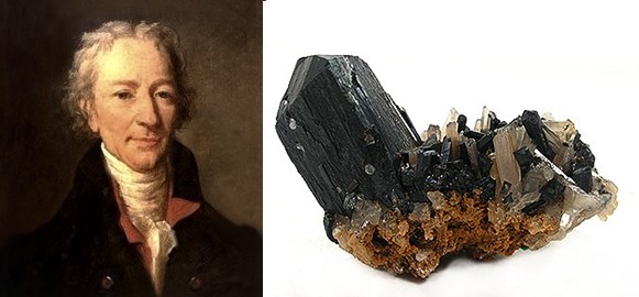 Il 2 giugno 1802 giunse all’Elba come Governatore, Claude-Hugues Lelièvre (1752-1835), nominato da Napoleone, Primo Console della Repubblica, per valorizzare i giacimenti minerari dell’Isola. Ma allo scienziato ed insigne mineralista, il ruolo politico- amministrativo stava alquanto stretto e dopo pochi mesi chiese di fare ritorno in Francia. Comunque nella sua pur breve permanenza elbana, raccolse numerosi campioni di minerali ivi comprese delle masse nere picee che bordavano le coste di Rio e Capo Calamita. Analizzati questi campioni al suo rientro, scoprì che si trattava di un nuovo minerale, un silicato di calcio e ferro, al quale dette il nome nel 1807 di Yenite, a ricordo della battaglia di Jena vinta da Napoleone il 14 Ottobre del 1806 . La sostituzione della “J” con la “Y” obbediva a ragioni puramente fonetiche. Comunque pochi anni dopo vennero proposti per questo minerale i nomi prima di ilvaite (1811) e poi di lievrite (1814), anche se non mancarono coloro che proposero un nome che legava il minerale a colui che per primo ne aveva segnalato la presenza: Déodat de Dolomieu. Questo riportano le pagine di www. mindat.org alla voce : ilvaite, da Ilva il nome latino dello” Scoglio”.