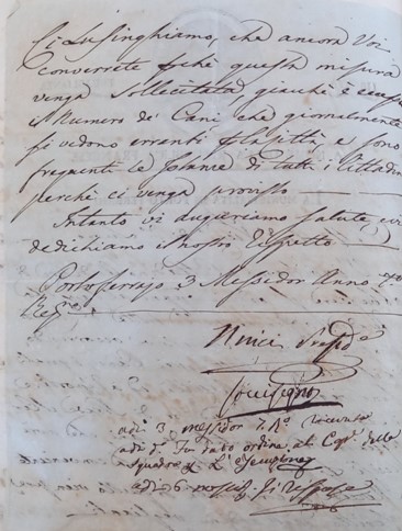 (FILZA “Lettere dalla presidenza del buon governo dell’anno 1800”C32.Carta senza numero di pagina.Archivio storico comune Portoferraio)