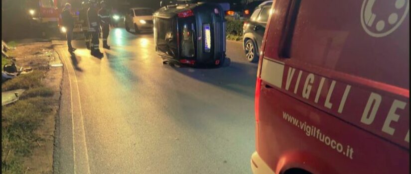 Due auto coinvolte, una in sosta a bordo strada, l’altra l'avrebbe urtata cappottandosi