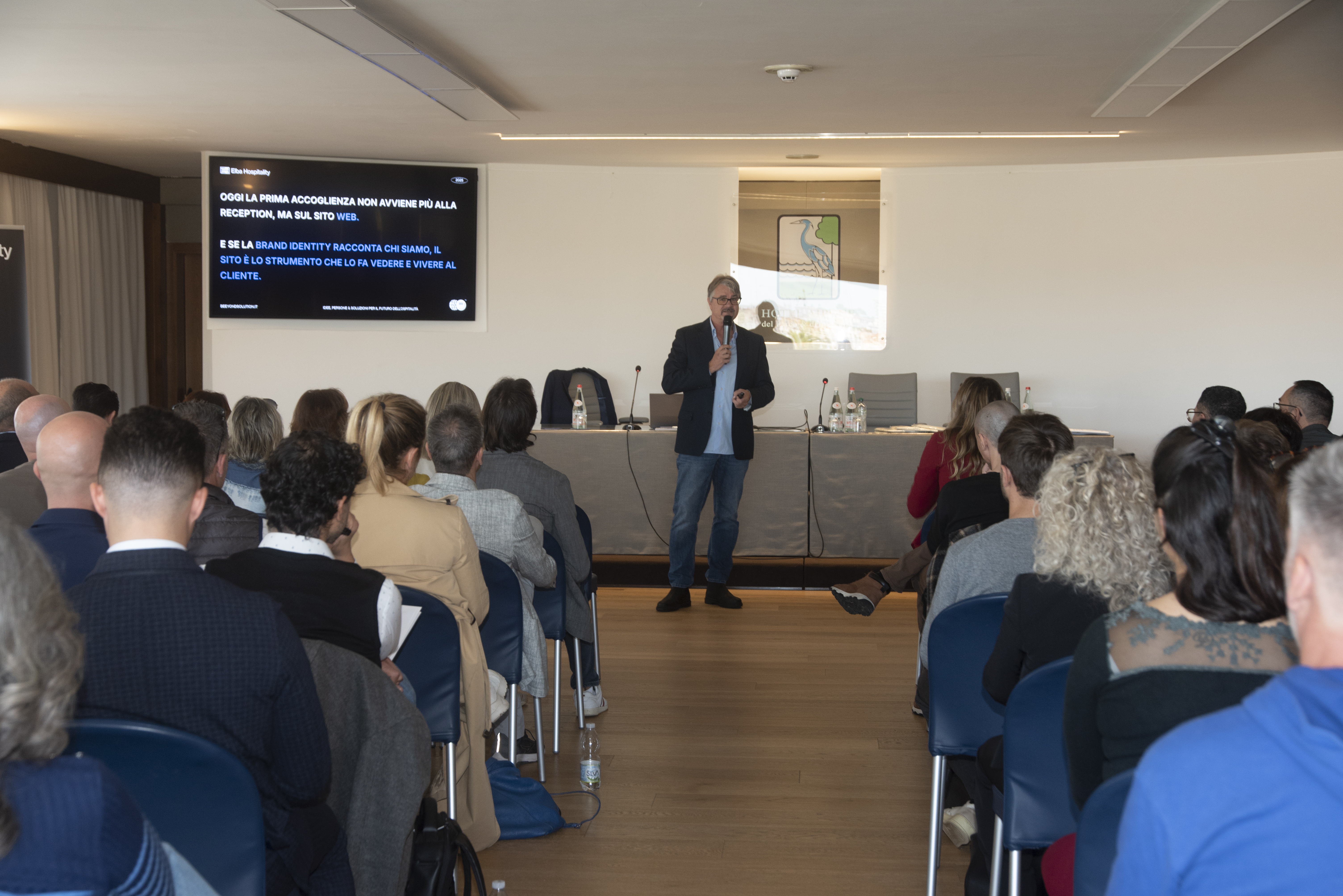Gruppo Beeyond Solution di cui fanno parte Elba System (Florian Lacchini), Elba Software (Andrea Ferrà), Elbalink (Franco Boschian), MC™ Design Co. (Mirko Conforti), Elipercento (Elisa Zago) e T.P.C. System (Elena Casagrandi), e i loro collaboratori attivi BeRevenue (Riccardo Peccianti e Vincenzo Ricciardi) e For Impact Consulting (Sara Verdinelli). I relatori hanno condiviso consigli su gestione software, disintermediazione dalle OTA, brand identity, strategie digitali, revenue management, automazioni operative e opportunità pratiche per ottenere finanziamenti.