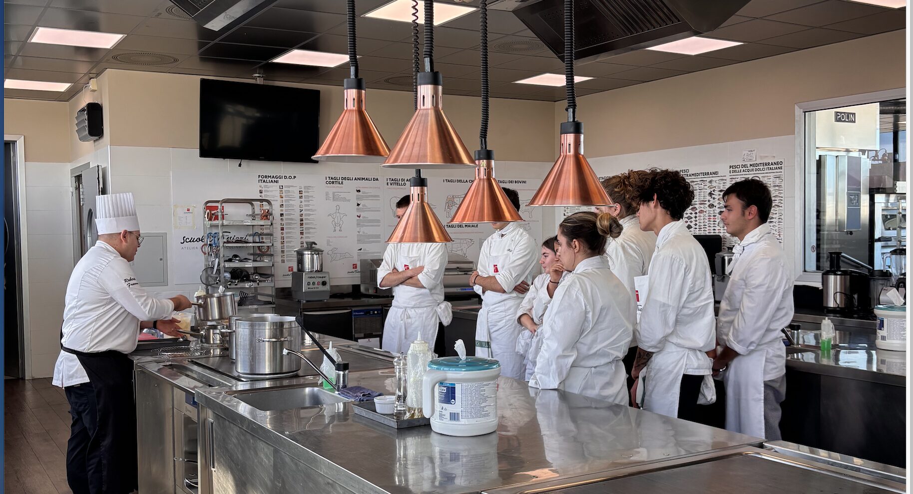 Martedì 18 novembre 2025 gli studenti della classe 5 ENO dell’Istituto Professionale Alberghiero ISIS Foresi hanno partecipato a una giornata di orientamento presso Scuola Tessieri – Atelier delle Arti Culinarie di Ponsacco, accompagnati dai docenti Gennaro Bellomo, Alessandra Moncini e Sara Palomba. L’esperienza si è collocata nell’ambito delle attività di Open Day proposte da Scuola Tessieri, che da anni offre agli istituti superiori lezioni aperte, incontri con docenti e chef, visite ai laboratori e momenti di confronto dedicati all’orientamento post-diploma. Un’occasione preziosa per permettere agli studenti di conoscere da vicino Scuola Tessieri, esplorare il mondo dell’alta formazione in cucina e pasticceria e acquisire nuove conoscenze per orientare le proprie decisioni professionali future.