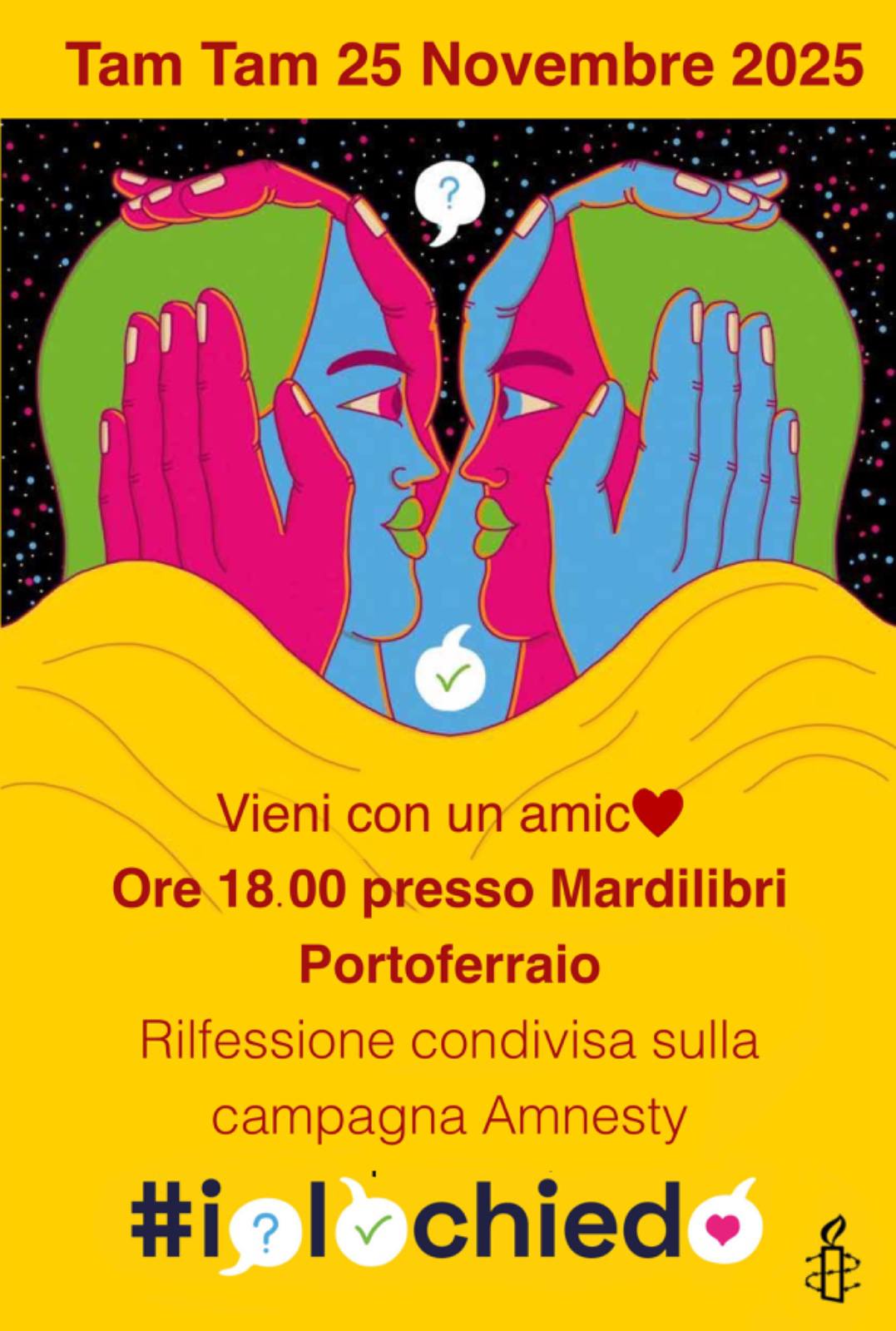 Alle ore 17 seguirà lettura e interpretazione di brani e poesie e infine, alle ore 18, una riflessione condivisa sulla campagna Amnesty International #iolochiedo, sul tema del consenso. Ospiti Teresa Rossi, Carla Pibia, Novella Morellini, Valeria Santacroce, Francesco Porro, Marilena Sangalli, Angela Tanzerina e tanti altri.