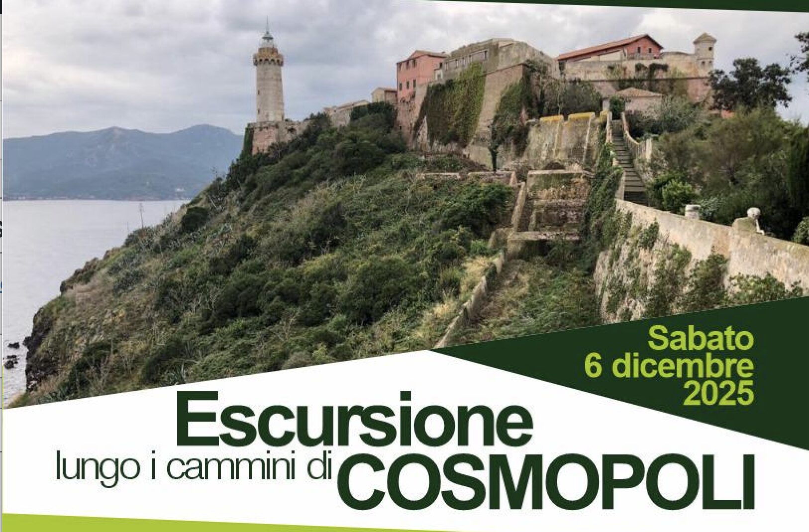 Un viaggio nella storia medicea di Cosmopoli, lungo bastioni, camminamenti segreti e affacci panoramici sul porto fortificato. È questo il cuore della nuova escursione organizzata dal CAI – Sottosezione Isola d’Elba, con il patrocinio del Comune di Portoferraio e della Cosimo de’ Medici srl, che sabato 6 dicembre accompagnerà i partecipanti alla scoperta dei “Cammini di Cosmopoli”, in un itinerario con partenza dal Grigolo e arrivo alla Fortezza della Linguella. Il percorso, breve e accessibile a tutti (3,5 km – difficoltà T), è concepito come una passeggiata storico-paesaggistica attraverso i tre livelli simbolici della città medicea: la linea costiera, la città murata e il sistema fortificato sommitale del Forte Falcone.