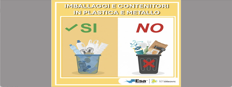 ESA invita quindi tutti i cittadini a prestare la massima attenzione e ricorda che cosa VA e che cosa NON VA conferito nel multimateriale: