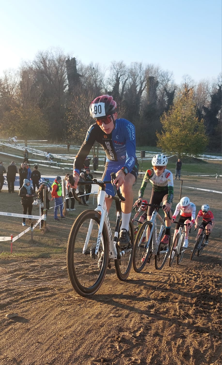 Ultime gare che terminano all’ imbrunire per il nostro Pietro Rododendro nella categoria AL 2; ad ogni gara è sorprendente vedere come vanno forte in una categoria ormai vicina, vicinissima alle gare Internazionali. Pietro nella giornata di Sabato, pur in 28ma posizione in griglia di partenza, curva dopo curva e giro dopo giro ricostruisce con forza e lucidità la gara che lo porterà a giungere in una incredibile settima posizione. La Domenica nei primi giri fatica un pò alla ricerca di risalire la testa della gara, ma con grinta e orgoglio recupera posizioni fino a giungere in 13.ma piazza guadagnando preziosi punti Top Class. Pietro rientra all’ Elba febbricitante, ecco il perché di quella risposta delle gambe alla sua voglia di riuscire non in sintonia con quello che avrebbe potuto fare. Ora buona guarigione, nel prossimo fine settimana Veneto, Lazio e Toscana aspettano i giovani ciclocrossisti di Elba Bike.