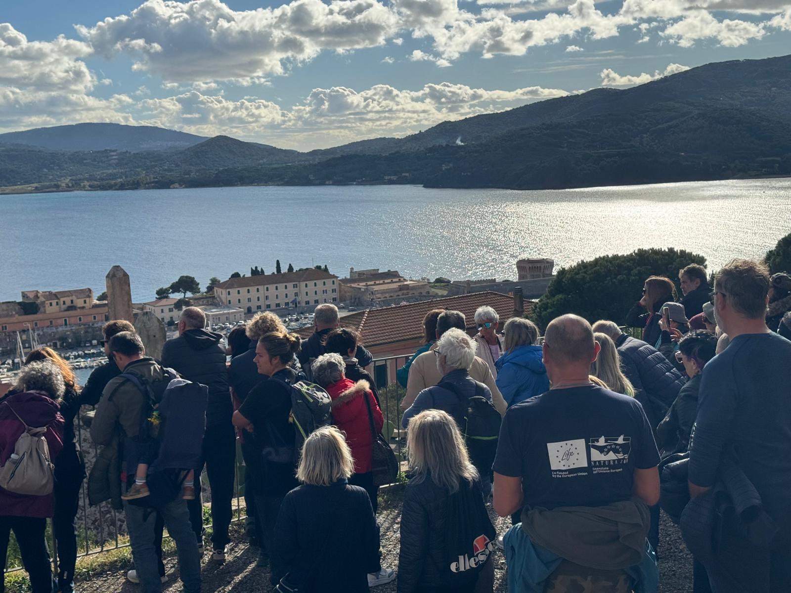 Il gruppo ha ammirato le fortificazioni del Forte Falcone, godendo della distesa di Portoferraio da una parte e del mar Tirreno dall’altra fino allo Scoglietto.