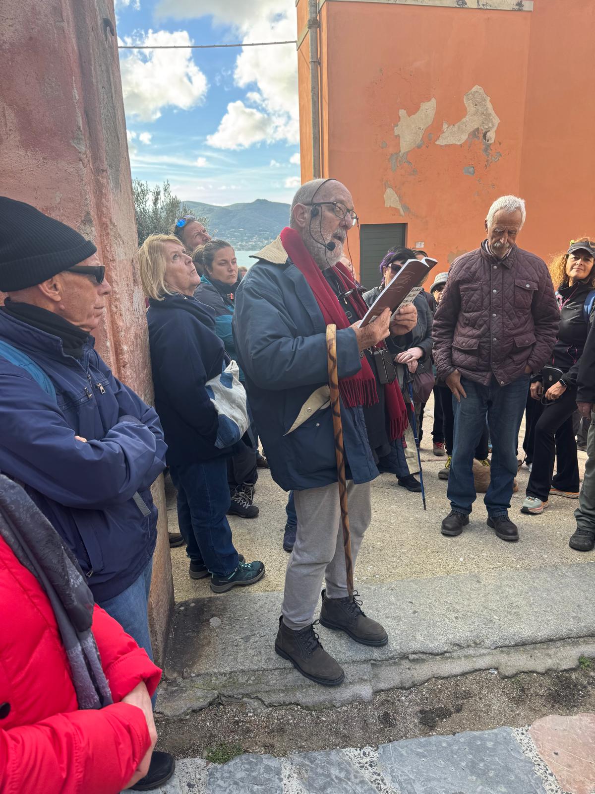Impervio e scivoloso, ma scenografico e ricco di riferimenti storici, il tratto fino alla Casa dei Fuochi, dove è stato possibile visitare il piccolo museo della Petite Armée napoleonica, mentre il Prof. Battaglini ha ripercorso, attraverso le lapidi poste sui muri del Forte Stella i momenti salienti della fondazione di Portoferraio e il momento in cui nel 1814 l’Elba fu finalmente riunificata.