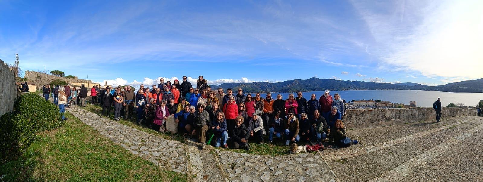 Il gruppo ha ammirato le fortificazioni del Forte Falcone, godendo della distesa di Portoferraio da una parte e del mar Tirreno dall’altra fino allo Scoglietto.