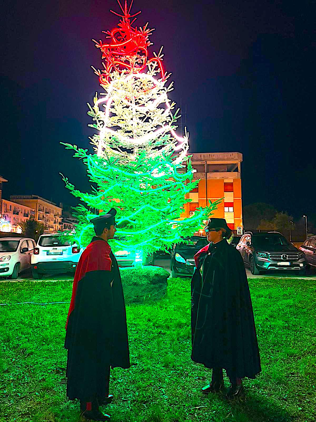 Un albero di Natale molto bello e originale con i colori della bandiera italiana è stato posto davanti alla caserma dei carabinieri all’incrocio fra Viale Elba e Via Manganaro. Un gesto simbolico, un segno di vicinanza di rispetto e affetto che l’amministrazione comunale ha voluto porgere all’Arma nei giorni di Natale. In un periodo dell’anno in cui la comunità si stringe, questo simbolo vuole ricordare quanto il legame tra cittadini e Istituzioni sia vivo, concreto e prezioso. Un albero di natale stilizzato colorato di bianco rosso e verde simbolo di pace e serenità.