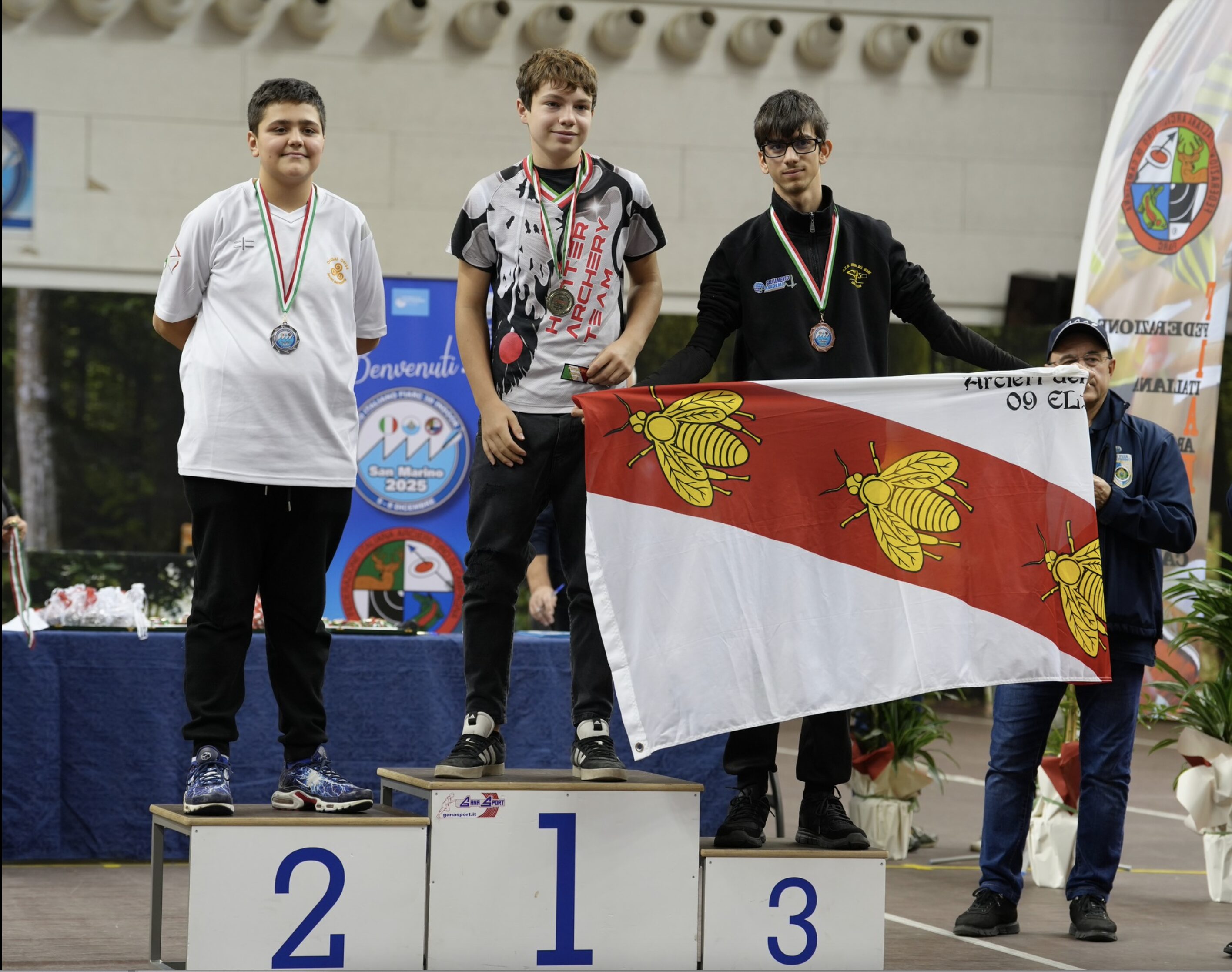 Dal 5 all’8 dicembre San Marino ha ospitato il Campionato Italiano Indoor FIARC di tiro con l’arco, uno degli appuntamenti più partecipati degli ultimi anni, con oltre 300 atleti da tutta Italia. Tra i protagonisti assoluti della rassegna gli Arcieri del Mare, presenti con 18 atleti e capaci di portarne ben 11 agli shoot off, la fase finale ad altissima tensione. Il bilancio finale è di grande prestigio: otto medaglie complessive e un titolo italiano. A brillare su tutti è stato Gabriele Muti, che nell’Arco Nudo ha disputato una gara perfetta, conquistando l’oro e il titolo di Campione Italiano Indoor FIARC. Ottime anche le prove di Debora Del Ministro, argento dopo una finale combattutissima, e di Cristofer Muti, sorprendente argento nel Compound. Dal settore giovanile arrivano segnali molto incoraggianti: Marta Agnoli conquista l’argento e Michelle Martorella il bronzo nell’Arco Ricurvo, mentre Diego Martorella sale sul terzo gradino del podio nell’Arco Nudo. Medaglie e piazzamenti di rilievo anche per Antonella Mazzei, Giada Sani e per gli altri atleti impegnati, protagonisti di gare solide e combattute. Nonostante qualche quarto posto amaro, come quelli di Patrizio Anselmi e Alessandra Ingrasci, la squadra elbana chiude il campionato con risultati di alto livello e un forte spirito di gruppo. Gli Arcieri del Mare si confermano così una realtà solida del panorama nazionale, capace di coniugare successi sportivi, crescita dei giovani e grande coesione.
