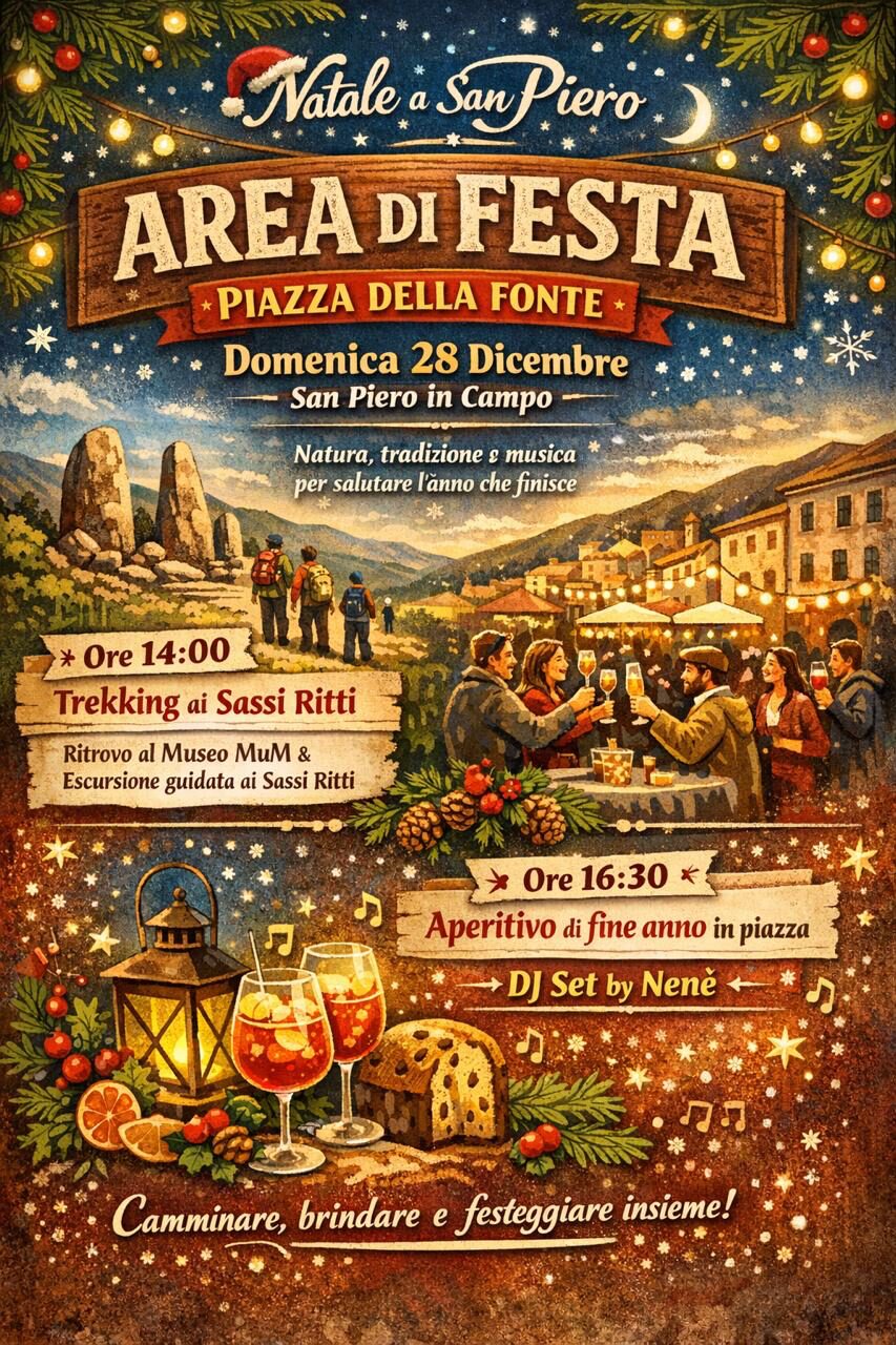 Al rientro dal trekking, la piazza si anima con musica, convivialità e brindisi collettivo per salutare l’anno che volge al termine.