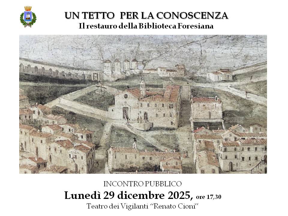 Un incontro pubblico per presentare i lavori di rifacimento del tetto della Biblioteca Foresiana di Portoferraio. Lunedì 29 dicembre, con inizio alle 17.30 presso il Teatro dei Vigilanti “Renato Cioni”, avrà luogo l’evento denominato “Un Tetto per la Conoscenza – Il restauro della Biblioteca Foresiana”, organizzato dal Comune di Portoferraio per celebrare l’inizio dei lavori, al quale parteciperà anche il Presidente della Regione Toscana Eugenio Giani.