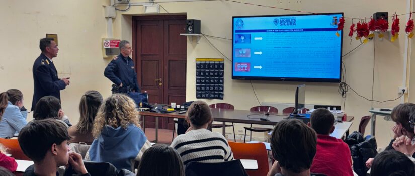 Si è svolto a ridosso delle festività natalizie il progetto di mobilità sicura, promosso dalla Provincia di Livorno nell’ambito del Progetto nazionale della Presidenza del Consiglio-Dipartimento delle politiche contro la droga e le altre dipendenze, volto a sensibilizzare i più giovani sul tema della correlazione tra incidentalità stradale e l’uso di alcol e droga e, in generale, sugli effetti dell’assunzione di alcol e di sostanze stupefacenti o psicotrope sulla capacità di guida. Nel corso di due interessanti incontri, tenutisi nell’Aula Magna del plesso del Grigolo il 16 ed il 19 dicembre, gli studenti della Quarta A del liceo classico e delle Quarte A e B dell’indirizzo scientifico hanno potuto ascoltare gli interventi di chi, operando nel settore, ha spiegato loro con chiarezza i