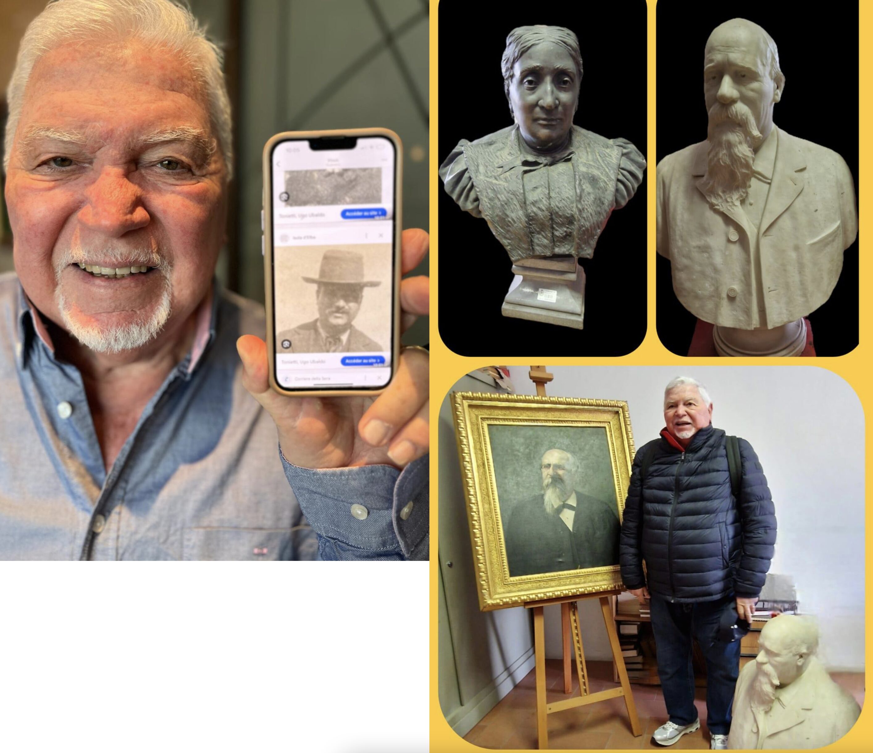 Nella seconda foto, Eduard accanto al ritratto di Giuseppe Tonietti e ai busti di lui e della moglie Cesira Scappini