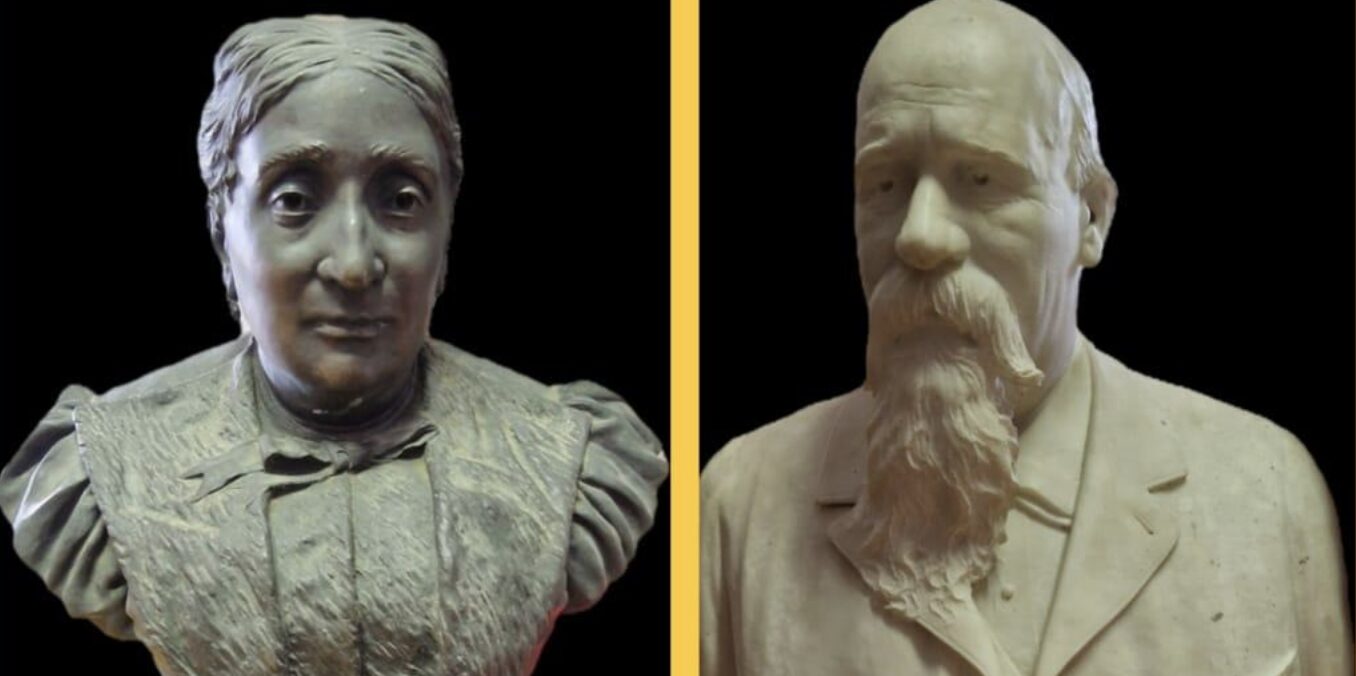 Nella seconda foto, Eduard accanto al ritratto di Giuseppe Tonietti e ai busti di lui e della moglie Cesira Scappini