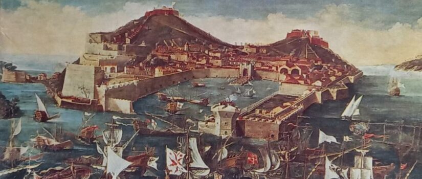 “… due altri grandi stanzoni furono fatti fra la Porta di Mare e il Bastione del Maggiore ,per costruirvi dentro all’occasione Galeazze e Galere come a suo tempo furono fatte colà dentro due bellissime Galeazze a guisa di quelle di Venezia ,lasciando a dirimpetto di quelli Stanzoni o Arsenali, la muraglia della Piazza assai sottile da potersi rompere con facilità e rifare con poca spesa e con prestezza.