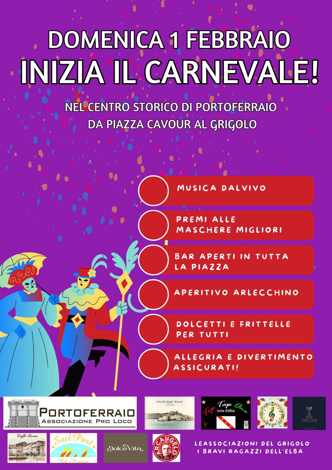 Domenica 1 febbraio dalle 14.30 La Pro Loco inaugura il Carnevale con una festa imperdibile nel Centro storico di Portoferraio da P.za Cavour al Grigolo! 🥳 Un vasto programma per tutti coloro che vorranno intervenire: Musica, allegria e tanta voglia di divertirsi. Premi alle migliori maschere (quindi… tirate fuori il vostro look più spettacolare!) Bar aperti in tutta la piazza con aperitivi “Arlecchino”, dolcetti e frittelle di Carnevale per tutti! Appuntamento in centro storico e al Grigolo… non mancate! 🎊🎈
