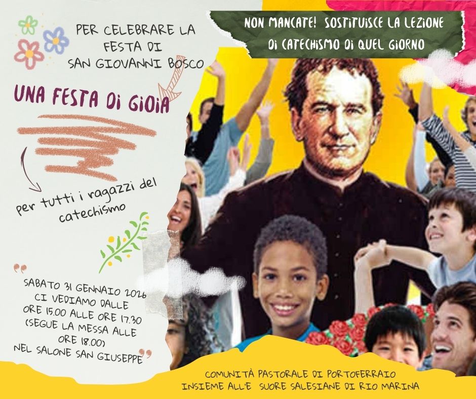 celebreremo la festa di Sant’Angela Merici, fondatrice dell’Istituto Secolare della Compagnia di Sant’Orsola, alle 18,45 terremo una veglia di preghiera in preparazione alla consacrazione solenne della nostra sorella Alessandra Soldani in questo istituto. Il momento di preghiera durerà fino alle 19,30 . E sabato 31,sempre nella nostra parrocchia,- prosegue – insieme alle nostre suore salesiane, celebreremo la festa del loro fondatore, San Giovanni Bosco. Ci sarà una grande festa di giochi, divertimento e merenda, per tutti i bambini, in particolare quelli che frequentano il catechismo, attuata al Campetto San Giuseppe alle 15. A seguire la messa delle 18 che sarà una messa festiva per commemorare la festa di questo grande santo, patrono dei bambini, dei ragazzi e degli oratori”.