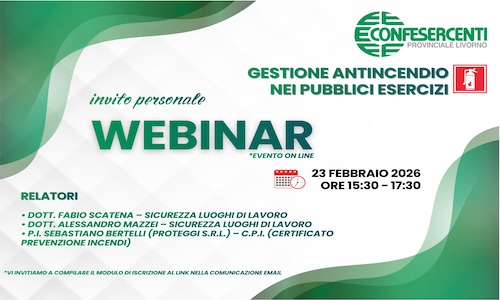 Per questo motivo Confesercenti Provinciale Livorno ha organizzato un webinar informativo rivolto ai titolari e ai gestori di pubblici esercizi, con l’obiettivo di offrire una lettura chiara e operativa delle novità introdotte. Durante l’incontro verranno illustrate le principali modifiche contenute nella circolare ministeriale, con particolare attenzione alle responsabilità dei gestori, alle differenze tra attività di somministrazione e pubblico spettacolo e agli aspetti legati alla prevenzione incendi e alla gestione delle emergenze.