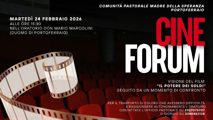 Ecco i nuovi avvisi di don Kevin Sciberras parroco della Comunità pastorale Madre della Speranza di Portoferraio. “Martedì 24 febbraio alle ore 15.30- dice il presbitero – nell’oratorio don Mario Marcolini, posto accanto al Duomo, si terrà il secondo incontro di cineforum, con visione del film “ Il Potere dei Soldi ” seguito da un momento di confronto. Sono invitati tutti i “giovani” con più di 60 anni. Per qualsiasi informazione contattate l’Ufficio della Comunità Pastorale o Giorgio Retali. E mercoledì 25 febbraio, è il quarto mercoledì di devozione a san Giuseppe in preparazione per la solennità di marzo. Alle ore 18.00 celebreremo la messa con una breve riflessione sulla spiritualità della vita di san Giuseppe e seguirà il canto delle litanie e la preghiera di intercessione al santo che dà nome alla parrocchia”. Venerdì 27 febbraio, come ogni venerdì, durante il cammino quaresimale, ci sarà un giorno di devozione a Gesù Crocifisso e alle 08.00 la Santa Messa all’altare del Crocifisso in Duomo. Poi alle 15.30 la Via Crucis a Santo Stefano e alle 16.30 la Via Crucis in Duomo e alle 17.15 medesimo evento, meditato, a san Giuseppe e a seguire, nella stessa chiesa, ci sarà la Santa Messa con una breve