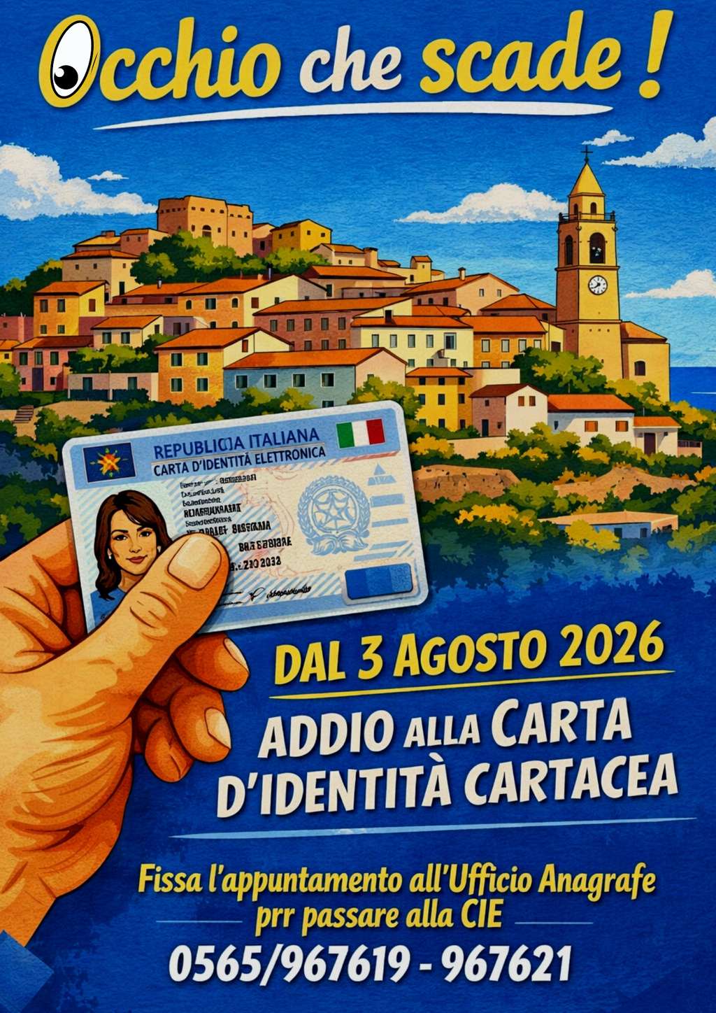 L’amministrazione invia quindi la cittadinanza a contattare l’Ufficio Anagrafe per fissare un appuntamento per la pratica con adeguato anticipo, indipendentemente dalla scadenza riportata sul documento e comunque prima del 3 agosto al seguente recapito: 0565/ 967619-967621.