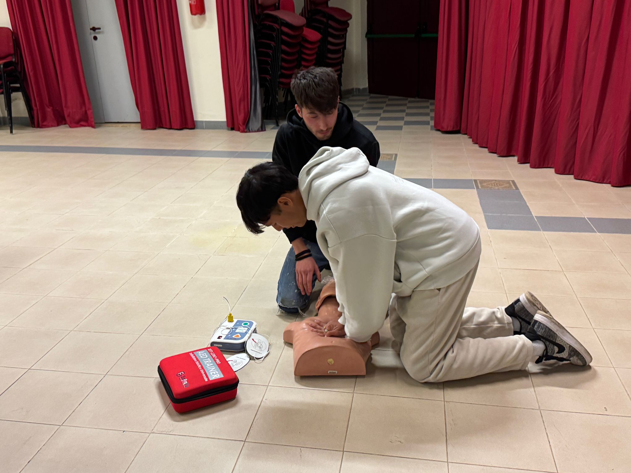 Durante il corso sono state illustrate e provate le principali tecniche di rianimazione cardiopolmonare, la gestione delle vie aeree e l’uso corretto del defibrillatore, strumenti fondamentali in caso di arresto cardiaco.
