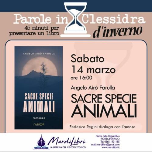 Sabato 14, alle ore 16:00, ospiteremo Angelo Airò Farulla, scrittore e traduttore, che presenterà il suo ultimo romanzo, “Sacre Specie Animali” (Nulla die edizioni, novembre 2025), accompagnato da Federico Regini, scrittore, amico e collaboratore. Il romanzo tratta del rapporto tra specie animali, tra esseri umani e altre forme di vita, e prende spunto dal discusso tema dell’eradicazione del cinghiale.