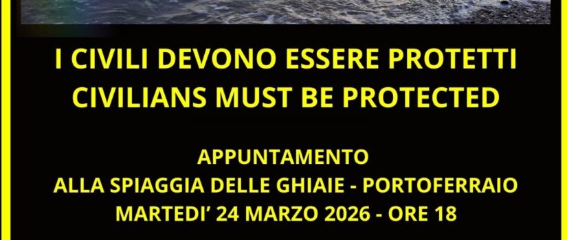 Martedì 24 marzo 2026 alle ore 18:00 si terrà un flash mob sulla Spiaggia delle Ghiaie a Portoferraio per chiedere la protezione dei civili nei conflitti armati. L’iniziativa è promossa da Amnesty International Isola d’Elba in collaborazione con I Messaggeri del Mare, con l’adesione del Forum Elba per la Pace, Elba for Gaza e ANPI. Sono numerosi i conflitti armati attualmente in corso nel mondo, che continuano a causare morte, migrazioni forzate e sofferenze su vasta scala tra la popolazione civile. La geografia delle guerre contemporanee comprende sia conflitti armati non internazionali, che coinvolgono più parti all’interno dello stesso Paese, sia conflitti armati internazionali, che vedono coinvolte le forze armate di due o più Stati.