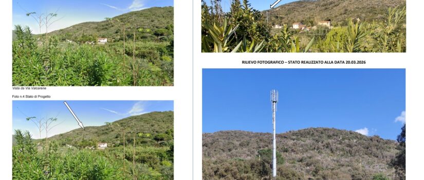 Il Comitato e l’associazione ambientalista ricordano che “L’opera prevede 1a realizzazione di un basamento in cemento armato di circa 4O mq e la collocazione di un’antenna di 36 metri di altezza (30 + 6 di supporti), con un impatto visivo assolutamente intollerabile nel locale contesto di insediamento caratterizzato da aree coltivate e da un tessuto abitativo diffuso. L’area di intervento, di proprietà di un privato,risulta essere particolarmente vicina alle abitazioni. I lavori hanno avuto inizio nell’ottobre 2025 e si sono in un primo tempo limitati ad alcuni interventi preliminari. Dopo una lunga sospensione, determinata sia dalle interlocuzioni tra il soggetto esecutore, l’Amministrazione Comunale (che in ogni caso si è dimostrata comprensiva e ricettiva nei confronti delle preoccupazioni dei cittadini) e il Comitato spontaneo di Valcarene, che da condizioni meteo e logistiche avverse, ì lavori sono ripresi negli ultimi giorni con la posa in opera del basamento in cemento armato e con il successivo rapido montaggio della struttura verticale”.