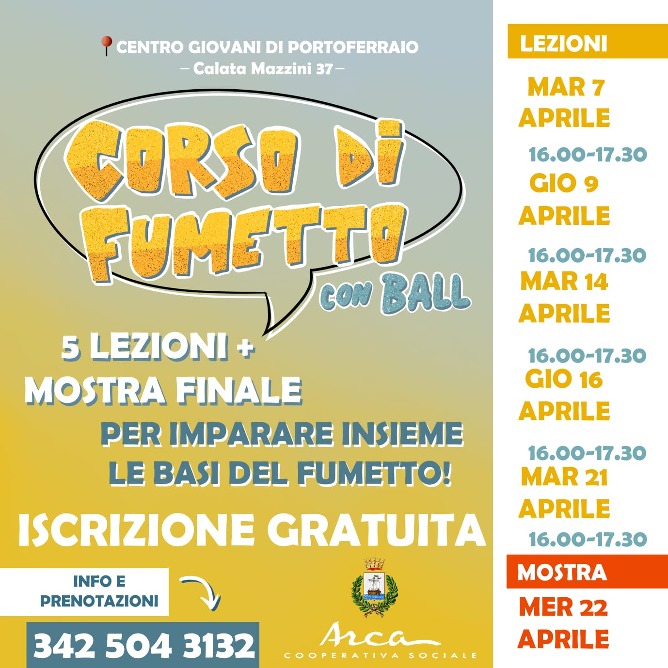 Aspiranti fumettisti e disegnatori di tutta l’Elba, a rapporto! Da martedì 7 Aprile parte il corso di fumetto, promosso da ARCA – Cooperativa Sociale e Comune di Portoferraio, per ragazz* dagli 11 ai 35 anni.