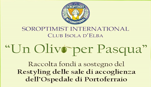 Sabato 28 marzo p.v. dalle h 10.00 alle h 13.00 nel piazzale del Conad Superstore e Domenica delle Palme in Piazza Cavour dalle h 10.00 alle h 13.00 il club Soroptimist International Isola d’Elba distribuirà “Un olivo per Pasqua” per la raccolta fondi destinata al restyling della sala d’attesa dell’ospedale di comunità di Portoferraio. Questa iniziativa, nata lo scorso anno, è rivolta a ciascuno di noi, alle nostre famiglie, alle persone a noi care poiché riservare un luogo dignitoso ai degenti e, soprattutto, ai familiari chiamati ad assisterli significa prendersi cura di noi stessi e di chi amiamo. Chiunque lo voglia può contribuire a questa iniziativa con una donazione presso i punti di offerta.