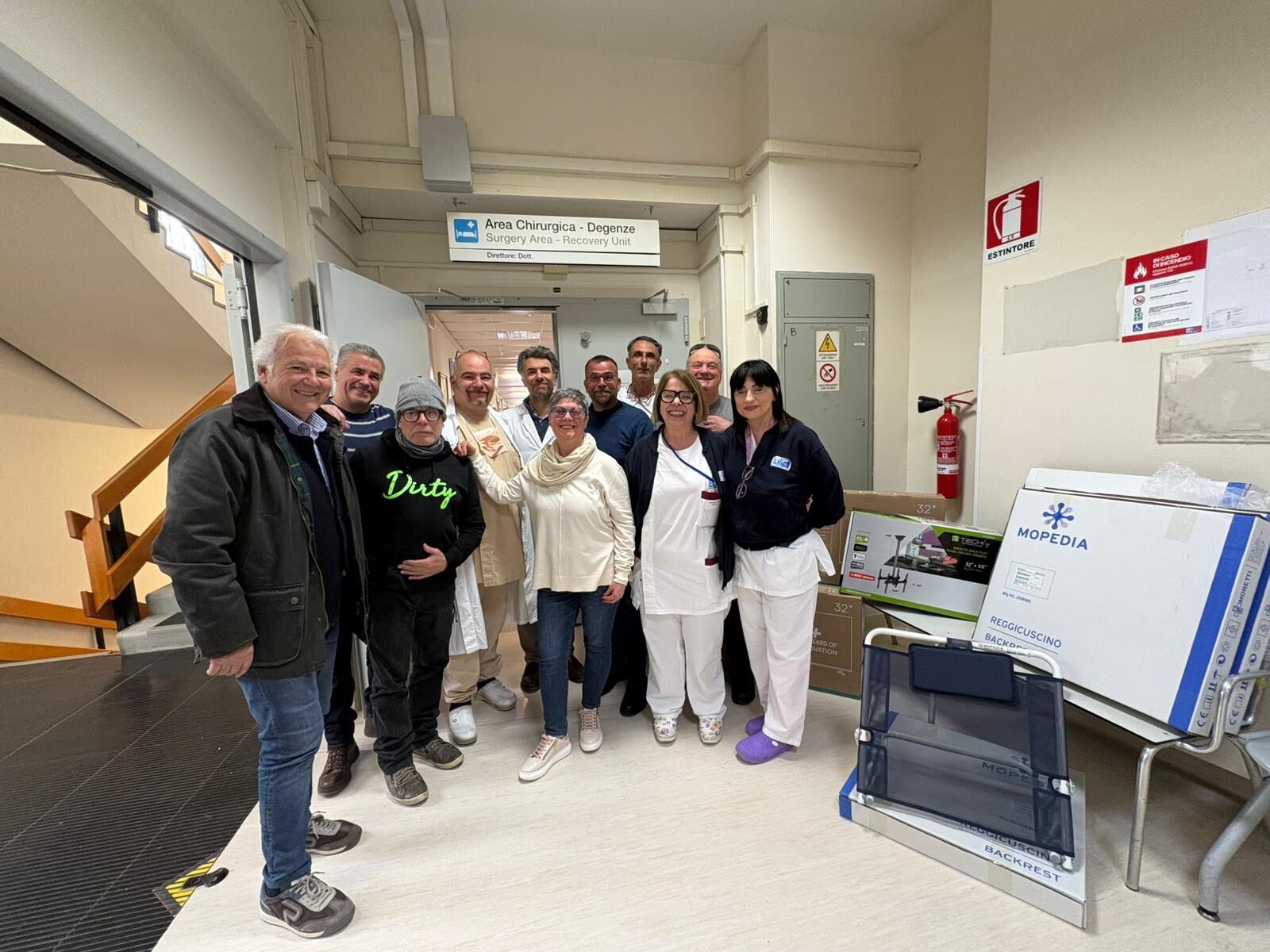 Dopo una raccolta fondi interna avviata lo scorso anno, i soci dell’associazione sono riusciti a raggiungere un obiettivo concreto e di grande valore: sette televisori completi di due staffe a muro e tre a soffitto, destinati alle stanze di degenza del reparto di chirurgia, pensati per offrire ai pazienti momenti di svago, sollievo e normalità durante il ricovero. Insieme a questi, verranno donati anche otto reggispalla da letto, strumenti fondamentali per migliorare la postura e agevolare i movimenti, contribuendo così alla massima comodità dei degenti.