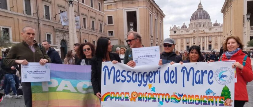 Domenica 15 marzo 2026, a Mezzogiorno, i “Messaggeri del Mare” hanno organizzato un significativo flash mob per la pace dei bambini nel mondo, in via della Conciliazione a Roma, proprio di fronte alla Basilica di San Pietro. Tra i membri dell’associazione arrivati da diverse parti d’Italia, spiccava Valentina Grosso, romana e avvocato di professione, che all’interno del gruppo ricopre un ruolo centrale nella lotta per i diritti delle donne. Valentina ha raccontato come è nata la sua collaborazione con i Messaggeri del Mare, “Una sera mentre mi trovavo a Chiessi, all’Isola d’Elba, ho visto nuotare un uomo e ne sono rimasta incuriosita. Parlando con lui, ho scoperto che era Pierluigi Costa fondatore dei “Messaggeri del Mare”, Pierluigi mi ha parlato dell’impegno dell’associazione per la tutela del mare, dell’ambiente, per la pace e i diritti universali.