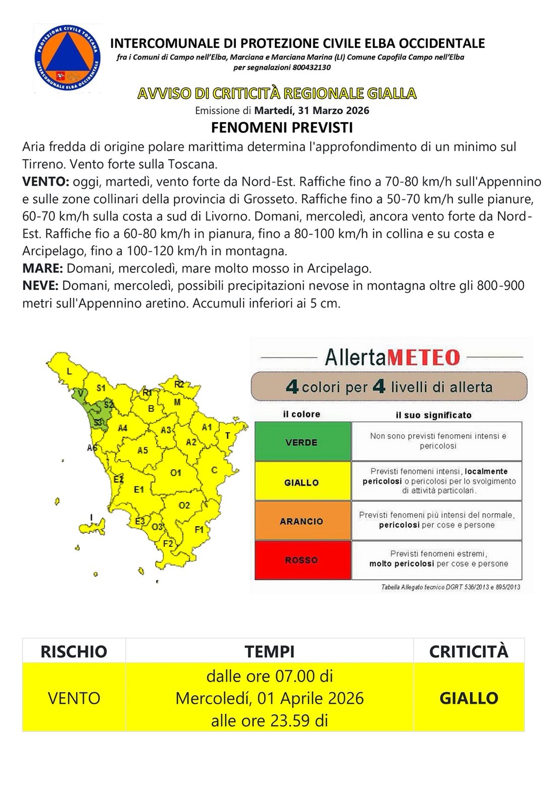 A partire dalla mattina di domani, mercoledì 1 aprile, per tutto il corso della giornata, previsto l’arrivo anche sul nostro Arcipelago di aria fredda di origine polare, che farà scendere ancora di più le temperature già fredde di questi ultimi giorni. Attesa anche un’intensificazione dei venti da Nord-Est, con raffiche fino a 80-100 km/h su costa e isole, con mare molto mosso. Possibili disagi per la circolazione dei traghetti.