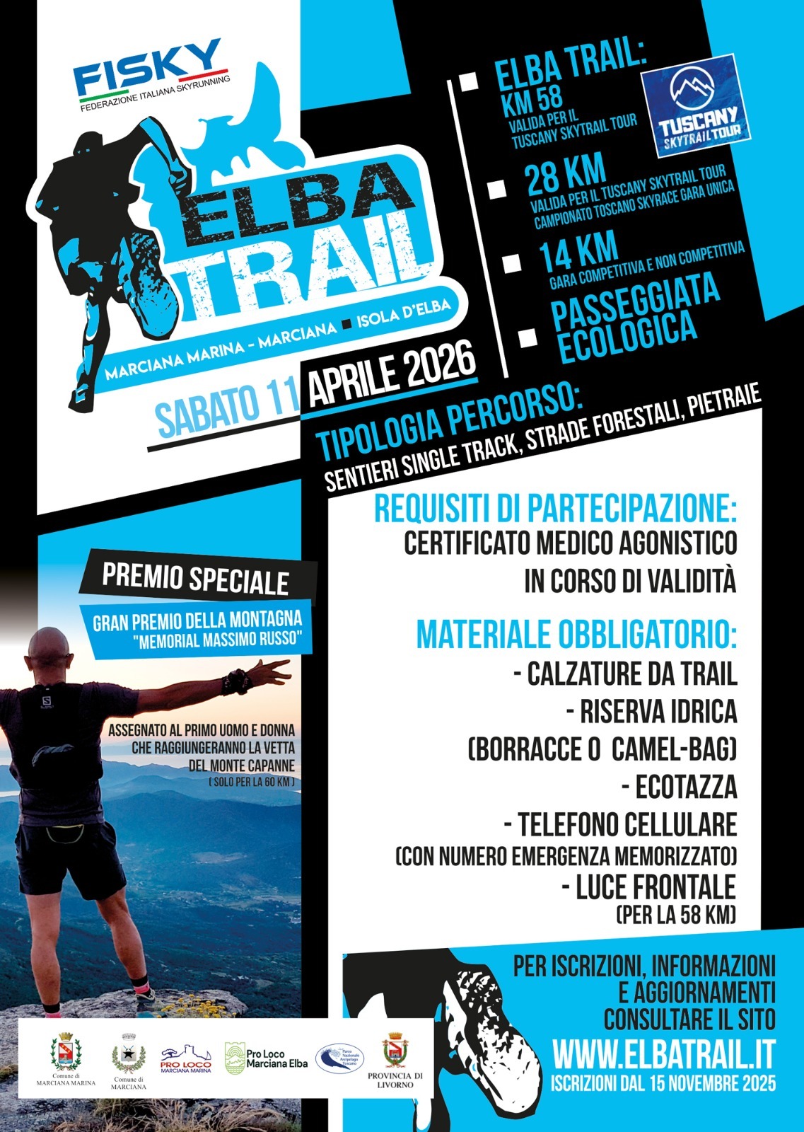 Per tutte le informazioni è possibile consultare il sito www.elbatrail.it (regolamento).