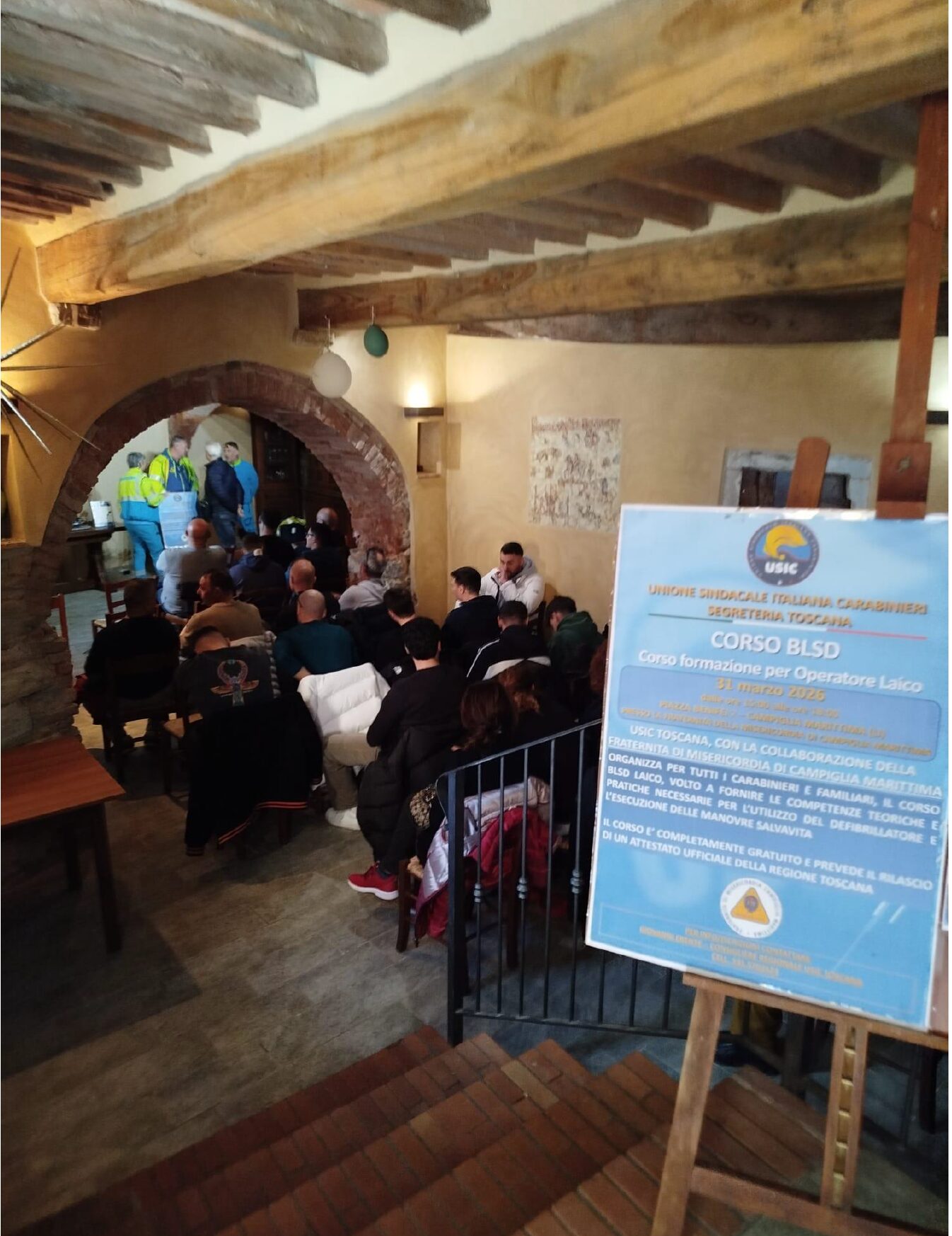 Il 31 marzo 2026, tra le 15 e le 18, la sede della Fraternita di Misericordia di Campiglia Marittima ha ospitato qualcosa di semplice nella forma ma straordinario nella sostanza: un corso BLSD per operatore laico, rivolto a carabinieri e ai loro familiari.