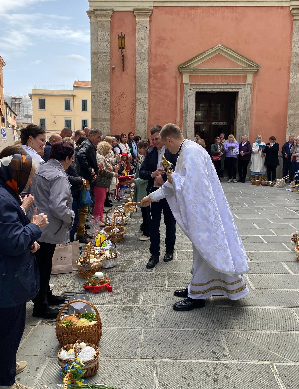 La celebrazione della Risurrezione di Cristo da parte della comunità ucraina è organizzata con il grande sostegno del parroco di Portoferraio, don Kevin, e della Chiesa cattolica locale.