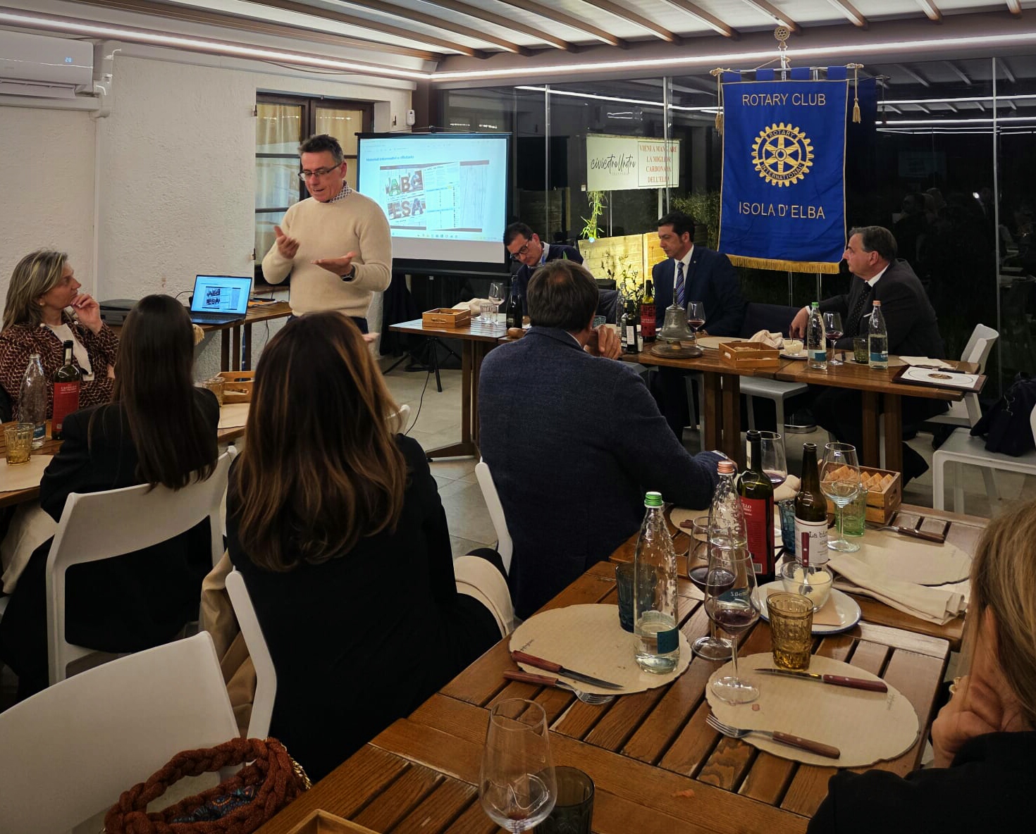 Dopo i saluti di rito, il Presidente Davide Pelliccioni ha presentato gli ospiti della serata: Massimo Diversi, Direttore Generale di E.S.A. S.p.A., e Maurizio Pelliccioni, Responsabile dei Servizi della stessa società. Il Presidente ha quindi illustrato i service attualmente in corso del Rotary Club Isola d’Elba, per poi cedere la parola a Massimo Diversi.