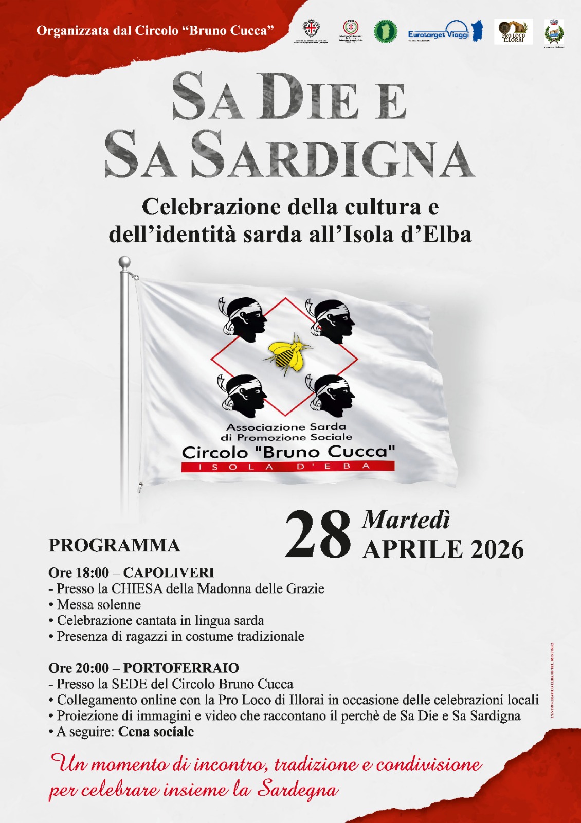 Una giornata dedicata alla tradizione, alla cultura e all’identità del popolo sardo anche all’Isola d’Elba. Martedì 28 aprile torna “Sa Die e Sa Sardigna”, appuntamento organizzato dal Circolo “Bruno Cucca” per celebrare le radici e rinsaldare il legame tra l’isola toscana e la Sardegna. Il programma si aprirà alle ore 18 a Capoliveri, presso la chiesa della Madonna delle Grazie, con una messa solenne accompagnata da canti in lingua sarda e dalla presenza di giovani in costume tradizionale, in un momento suggestivo che unisce spiritualità e identità culturale. La serata proseguirà poi a Portoferraio, alle ore 20, nella sede del Circolo “Bruno Cucca”. Qui è previsto un collegamento online con la Pro Loco di Illorai, in contemporanea con le celebrazioni in Sardegna, oltre alla proiezione di immagini e video dedicati al significato storico e simbolico di “Sa Die e Sa Sardigna”. A concludere la giornata sarà una cena sociale, occasione di condivisione e convivialità, nel segno delle tradizioni. Un evento che si conferma come un importante momento di incontro per la comunità sarda all’Elba e per tutti coloro che vogliono conoscere e vivere più da vicino una cultura ricca e profondamente radicata.